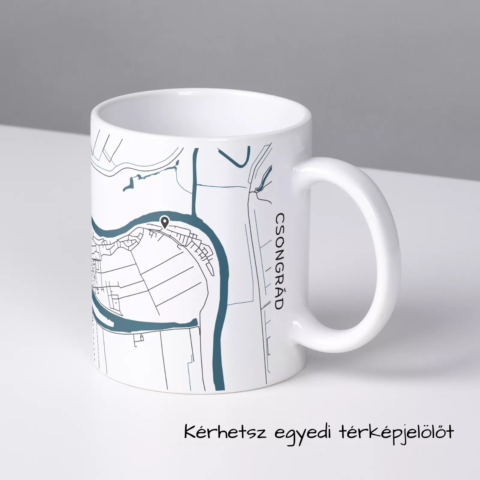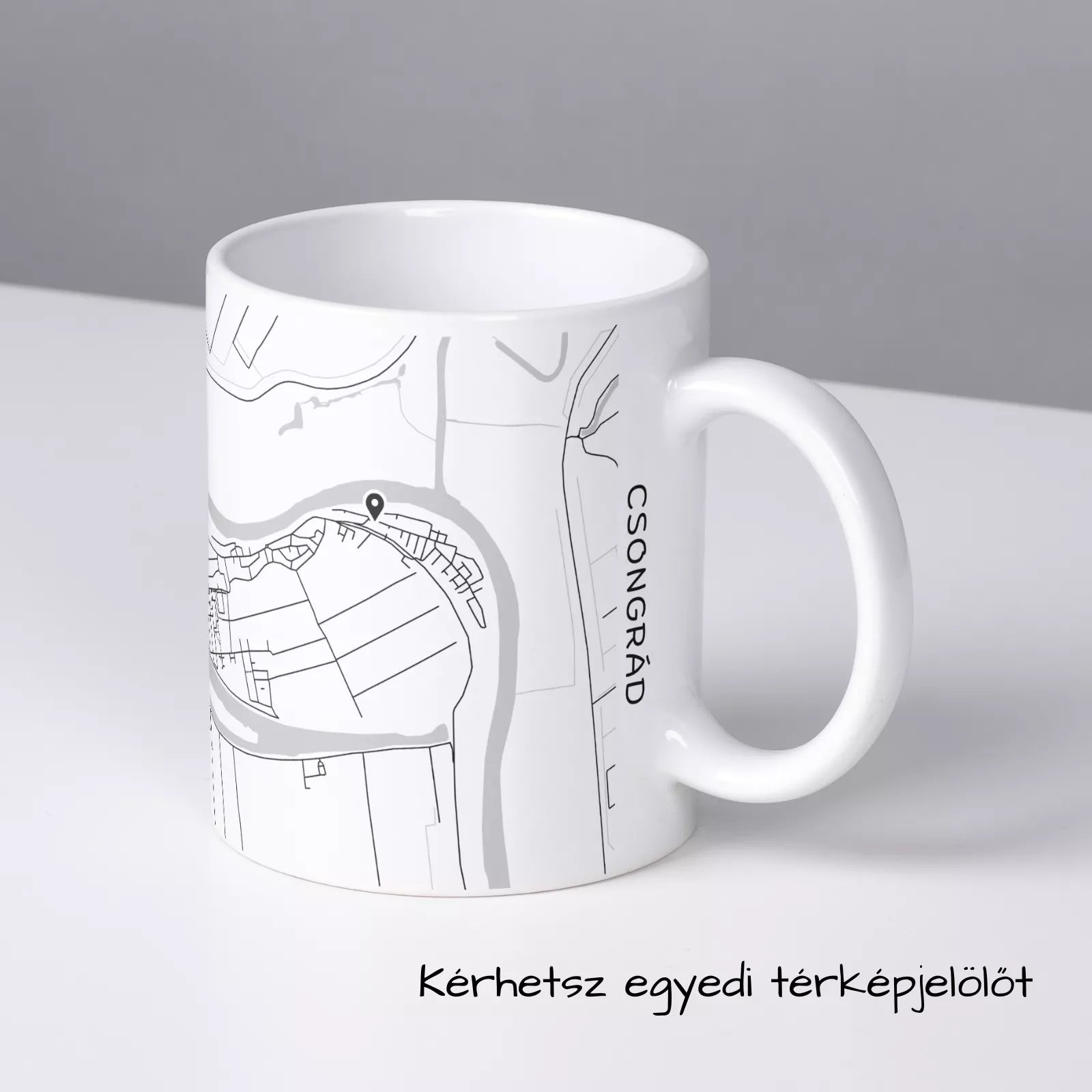 Ezek a helyszínek könnyen beazonosíthatók a bögrén, de kérésre térképjelölővel Csongrád bármely pontját ki tudjuk emelni, és így egy igazán különleges emléktárgyat varázsolunk Neked!