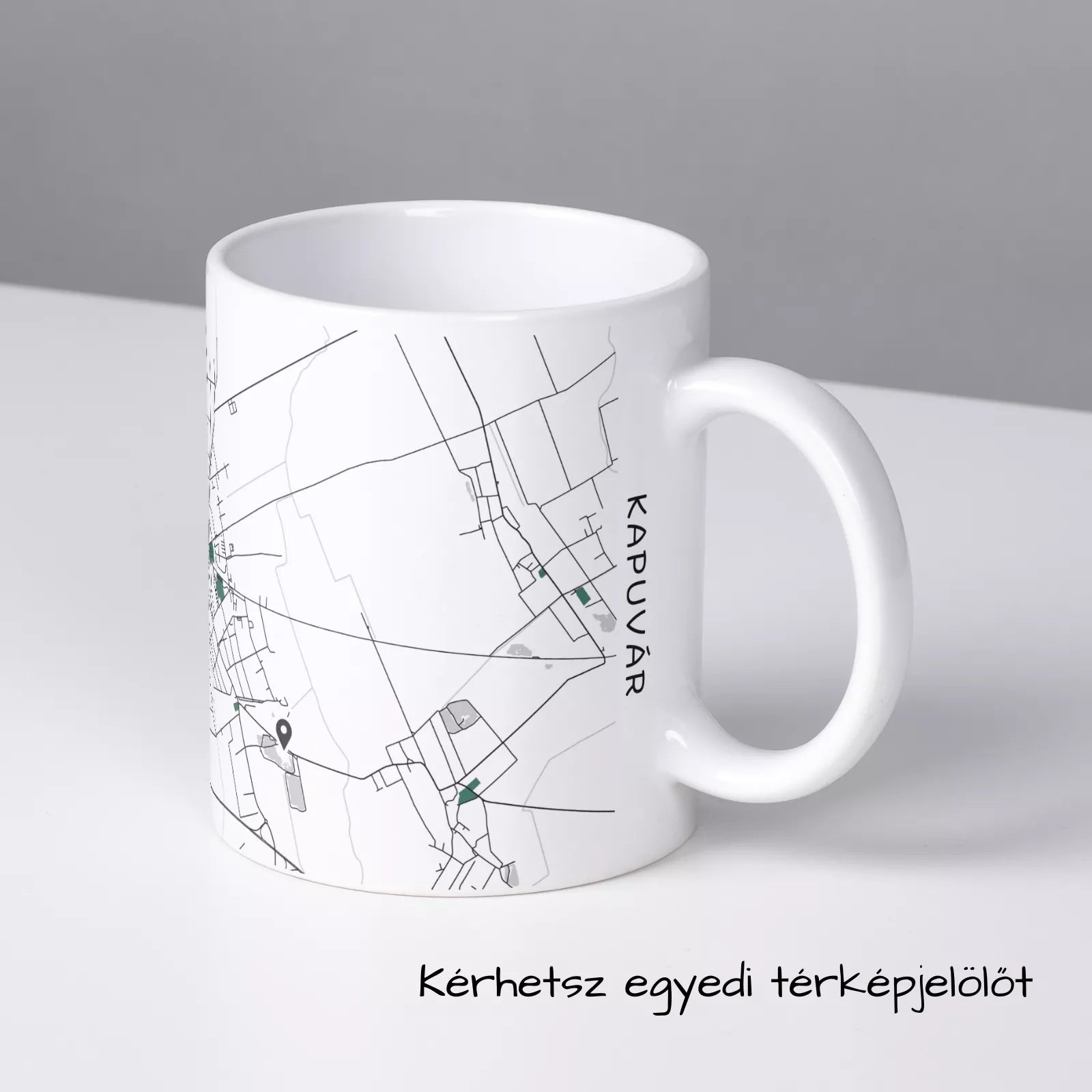 Ezek a helyszínek könnyen beazonosíthatók a bögrén, de kérésre térképjelölővel Kapuvár bármely pontját ki tudjuk emelni, és így egy igazán különleges emléktárgyat varázsolunk Neked!