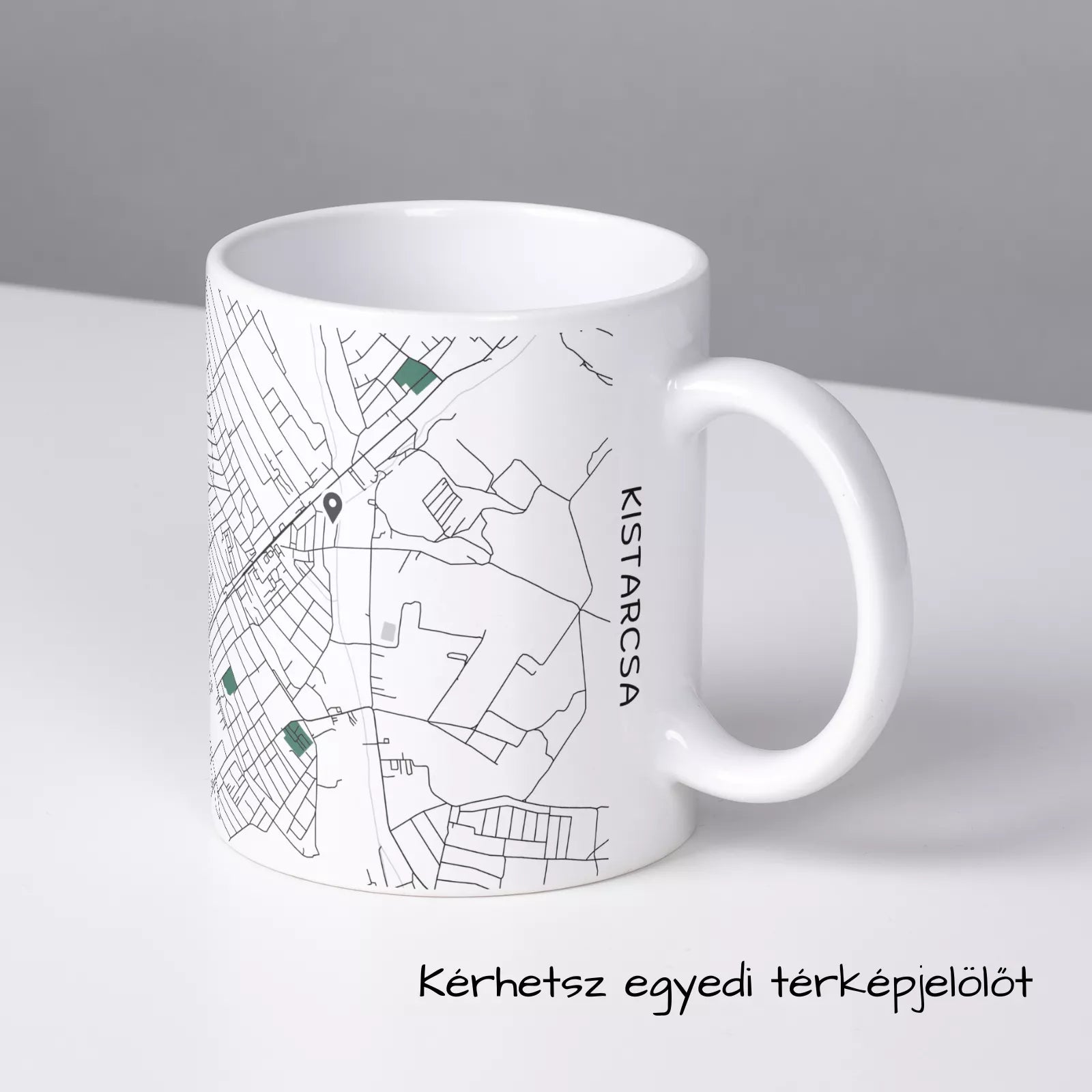 Ezek a helyszínek könnyen beazonosíthatók a bögrén, de kérésre térképjelölővel Kistarcsa bármely pontját ki tudjuk emelni, és így egy igazán különleges emléktárgyat varázsolunk Neked!