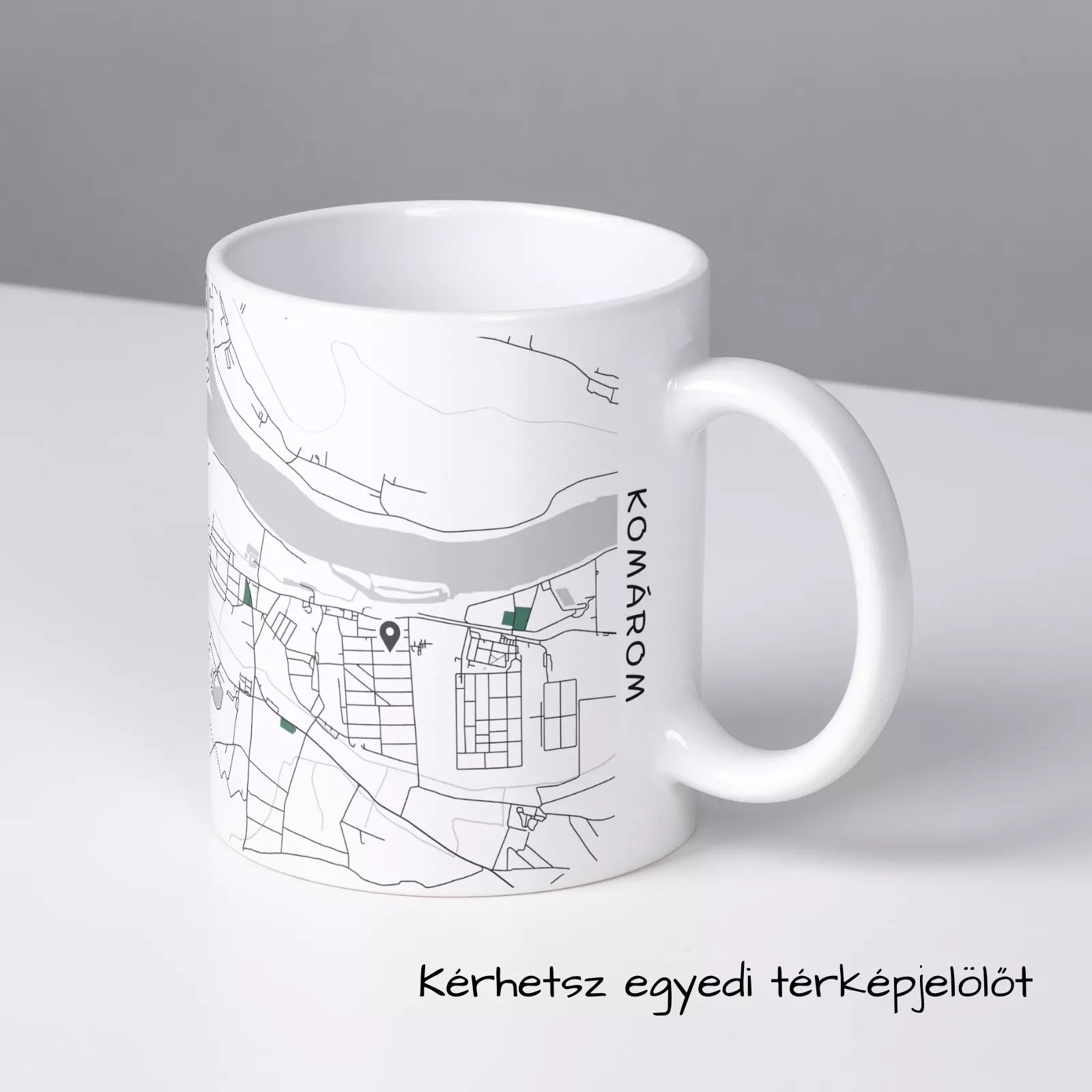 Ezek a helyszínek könnyen beazonosíthatók a bögrén, de kérésre térképjelölővel Komárom bármely pontját ki tudjuk emelni, és így egy igazán különleges emléktárgyat varázsolunk Neked!