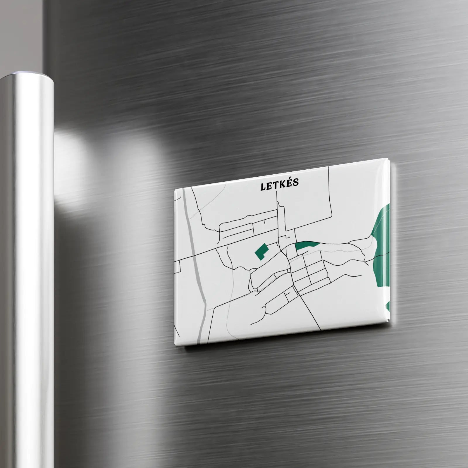 Ezen a prémium, 8x5,5cm méretű hűtőmágnesen Letkés dizájn térképe kapott helyet, amelyen a község főbb útvonal hálózata elevenedik meg. A felhasznált nagyméretű mágnes garantáltan stabilan tartja a hűtőre vagy egyéb fém tárgyra elhelyezett fényképet, bevásárló listát, személyes üzeneteket.