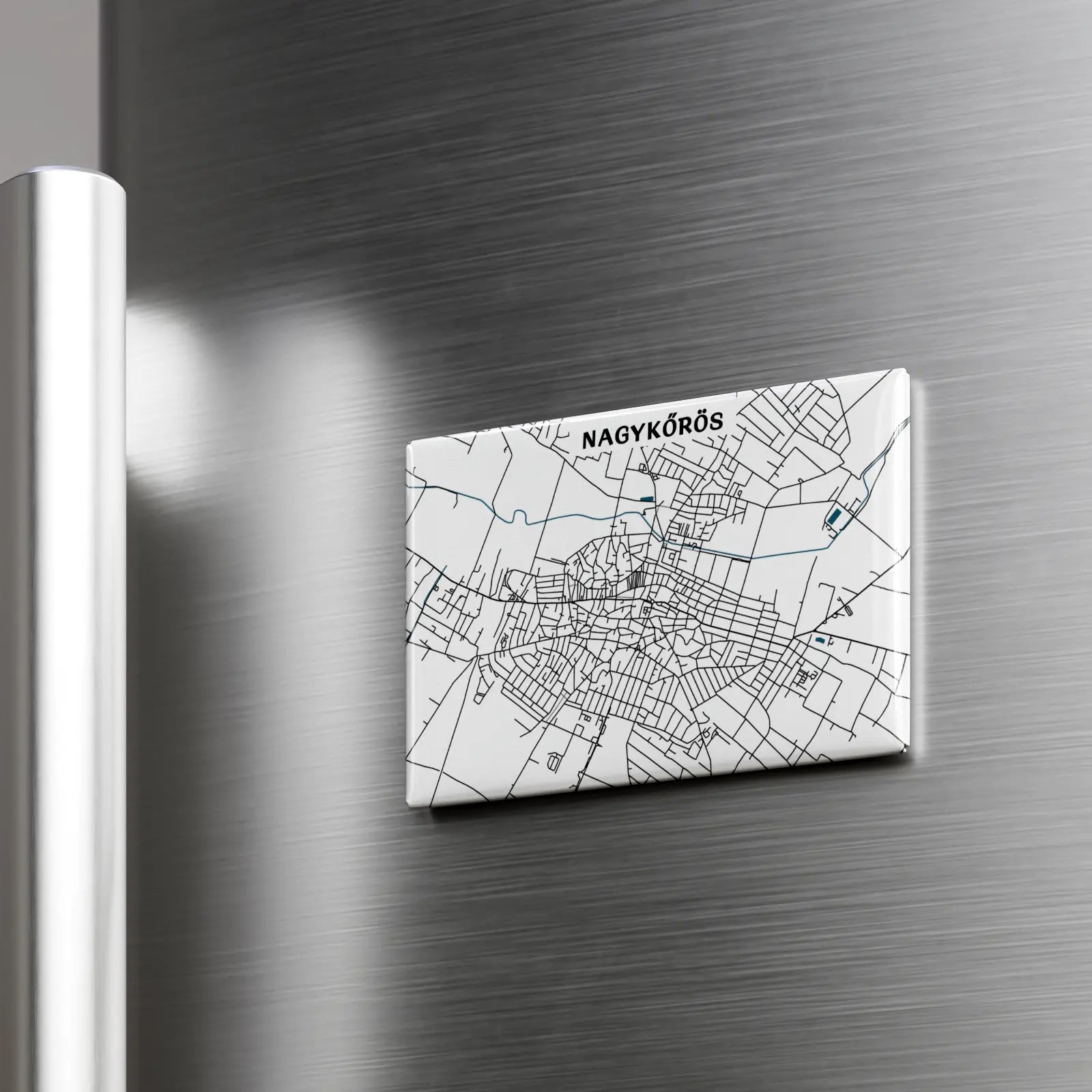 Ezen a prémium, 8x5,5cm méretű hűtőmágnesen Nagykőrös dizájn térképe kapott helyet, amelyen a város főbb útvonal hálózata elevenedik meg. A felhasznált nagyméretű mágnes garantáltan stabilan tartja a hűtőre vagy egyéb fém tárgyra elhelyezett fényképet, bevásárló listát, személyes üzeneteket.