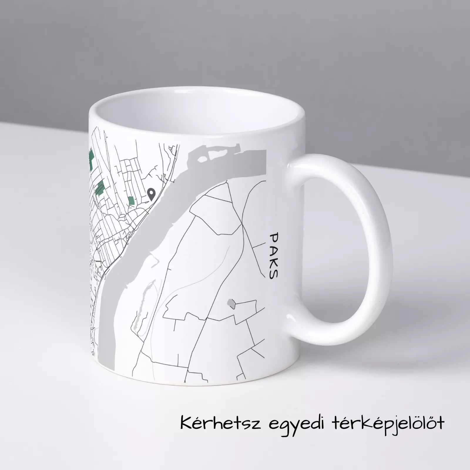 Ezek a helyszínek könnyen beazonosíthatók a bögrén, de kérésre térképjelölővel Paks bármely pontját ki tudjuk emelni, és így egy igazán különleges emléktárgyat varázsolunk Neked!