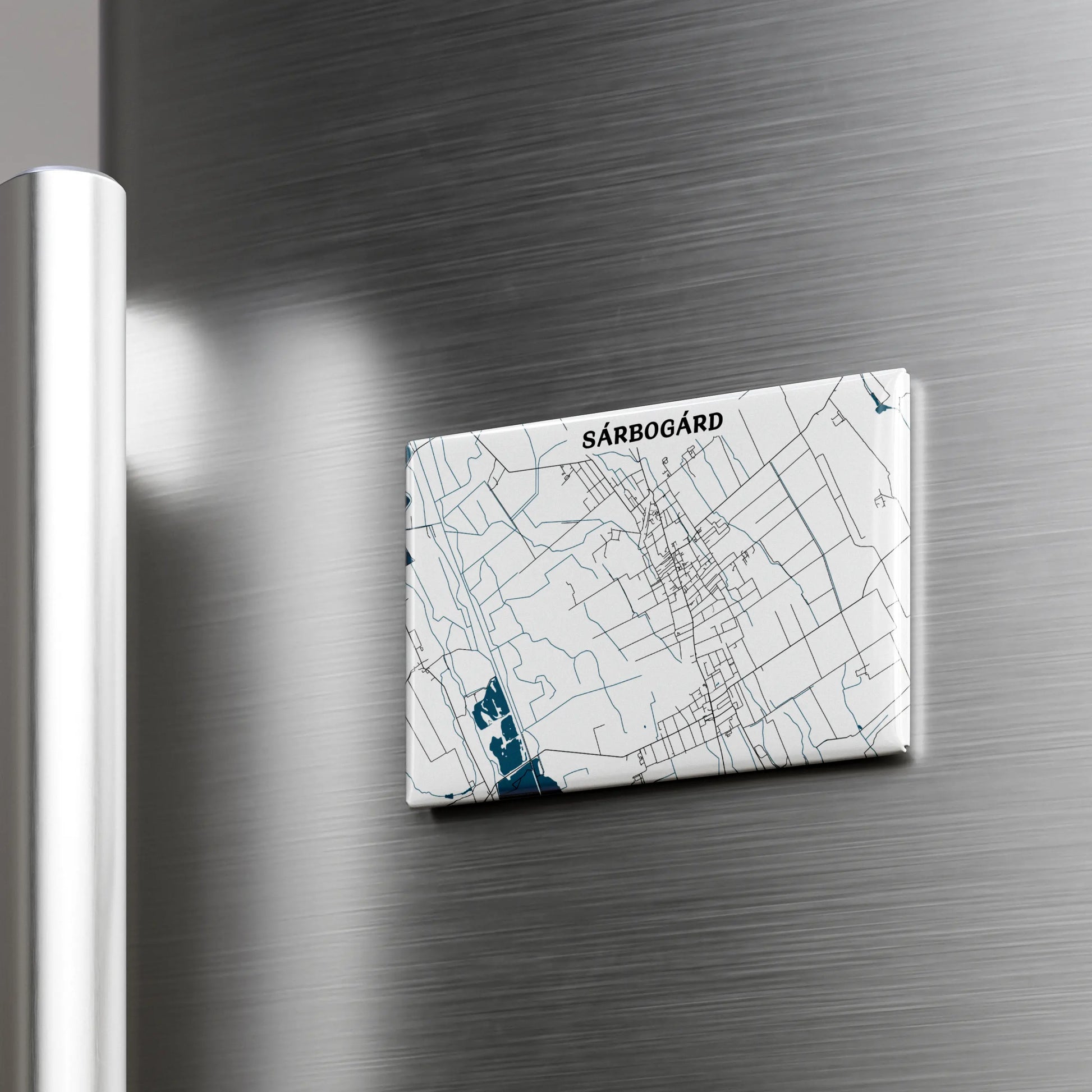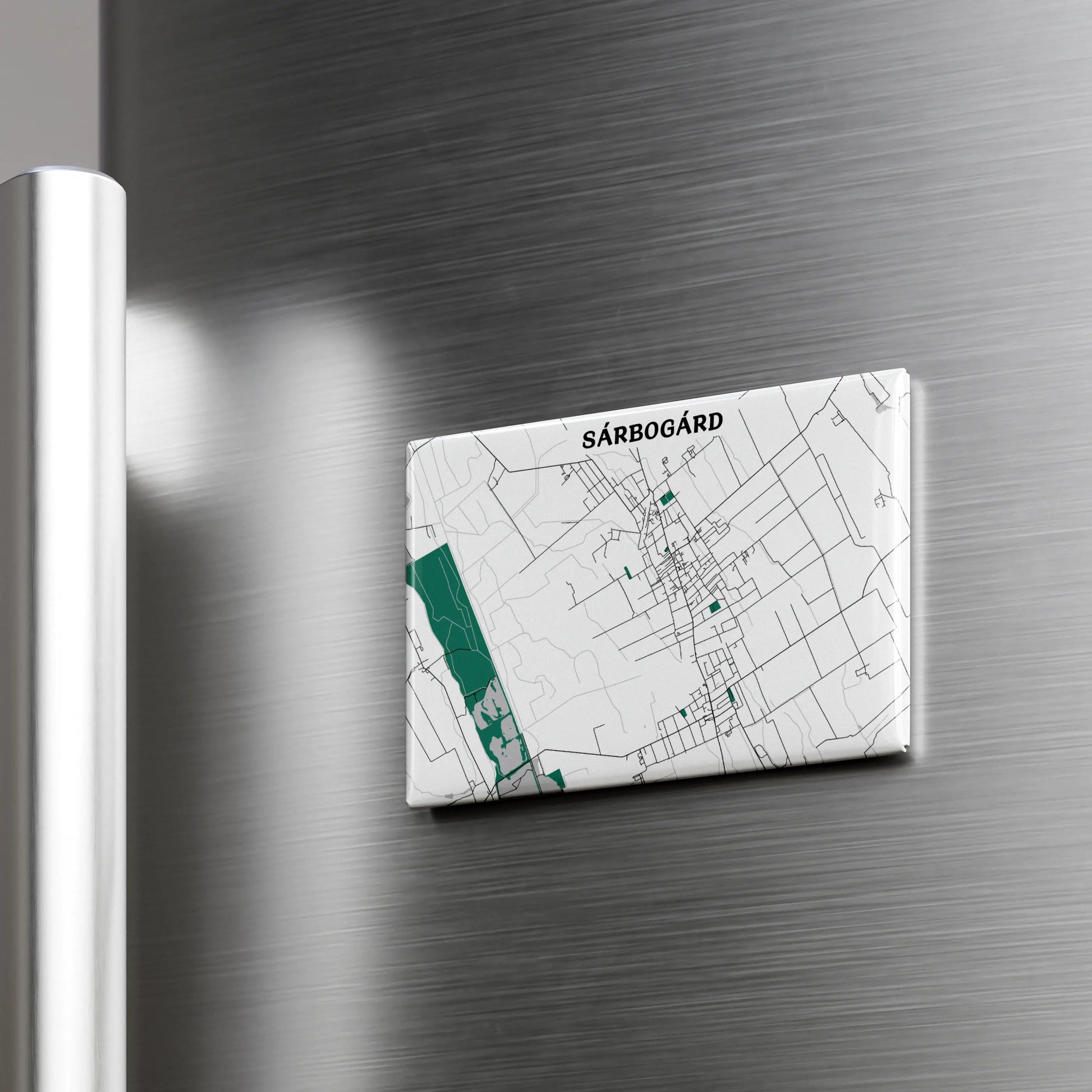 Ezen a prémium, 8x5,5cm méretű hűtőmágnesen Sárbogárd dizájn térképe kapott helyet, amelyen a város főbb útvonal hálózata elevenedik meg. A felhasznált nagyméretű mágnes garantáltan stabilan tartja a hűtőre vagy egyéb fém tárgyra elhelyezett fényképet, bevásárló listát, személyes üzeneteket.