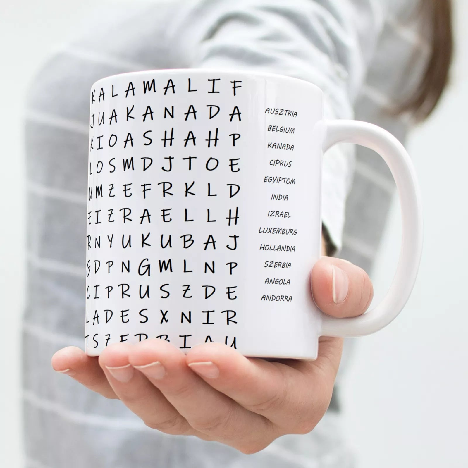 Ha szereti a logikai kihívásokat és azokat a tárgyakat, amelyek nemcsak szépek, de különleges feladványt is tartalmaznak, akkor ez a szókereső bögre Önnek készült.