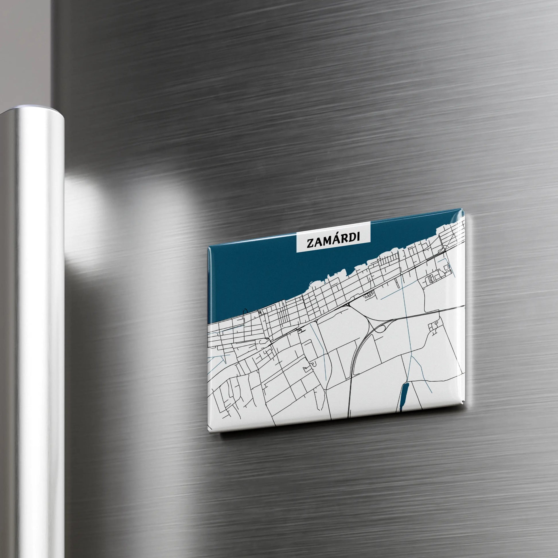 Ezen a prémium, 8x5,5cm méretű hűtőmágnesen Zamárdi dizájn térképe kapott helyet, amelyen a város főbb útvonal hálózata elevenedik meg. A felhasznált nagyméretű mágnes garantáltan stabilan tartja a hűtőre vagy egyéb fém tárgyra elhelyezett fényképet, bevásárló listát, személyes üzeneteket.